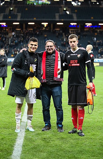 Många insatser från våra spelare gladde, utan att glömma någons insats kan vi nämna Viktor Lager, Eminn Ghozzi, vår 17-årige målvakt Marvin Myhberg, "avtackningen" av Kenny Pavey inför publiken samt matchens lirare, 01:an Oliver Young Shing, på bilden tillsammans med AIK:s Tarik Elyuonossi samt Björn Israelson från vår herrsektion.